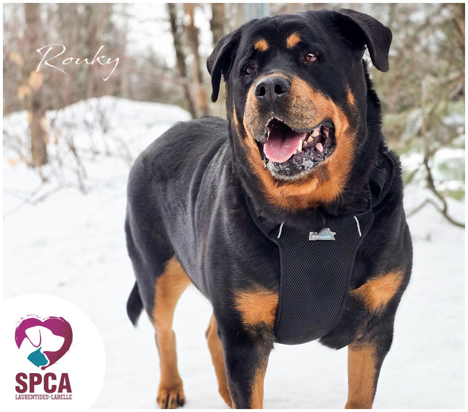 Un beau rottweiler de 7 ans, avec un cœur aussi grand que moi (et un petit bedon en bonus… on travaille là-dessus, promis ).